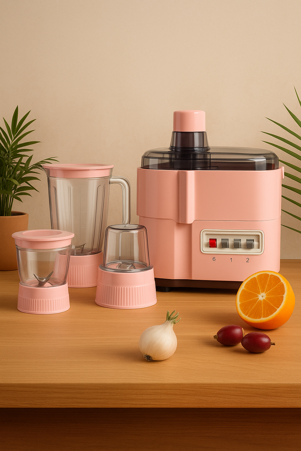 Soft peach tones and sleek lines bring warmth to your space while delivering professional results. Turn everyday fruits into moments of freshness and joy with silky textures and vibrant taste. Beauty and function meet to elevate your healthy lifestyle.